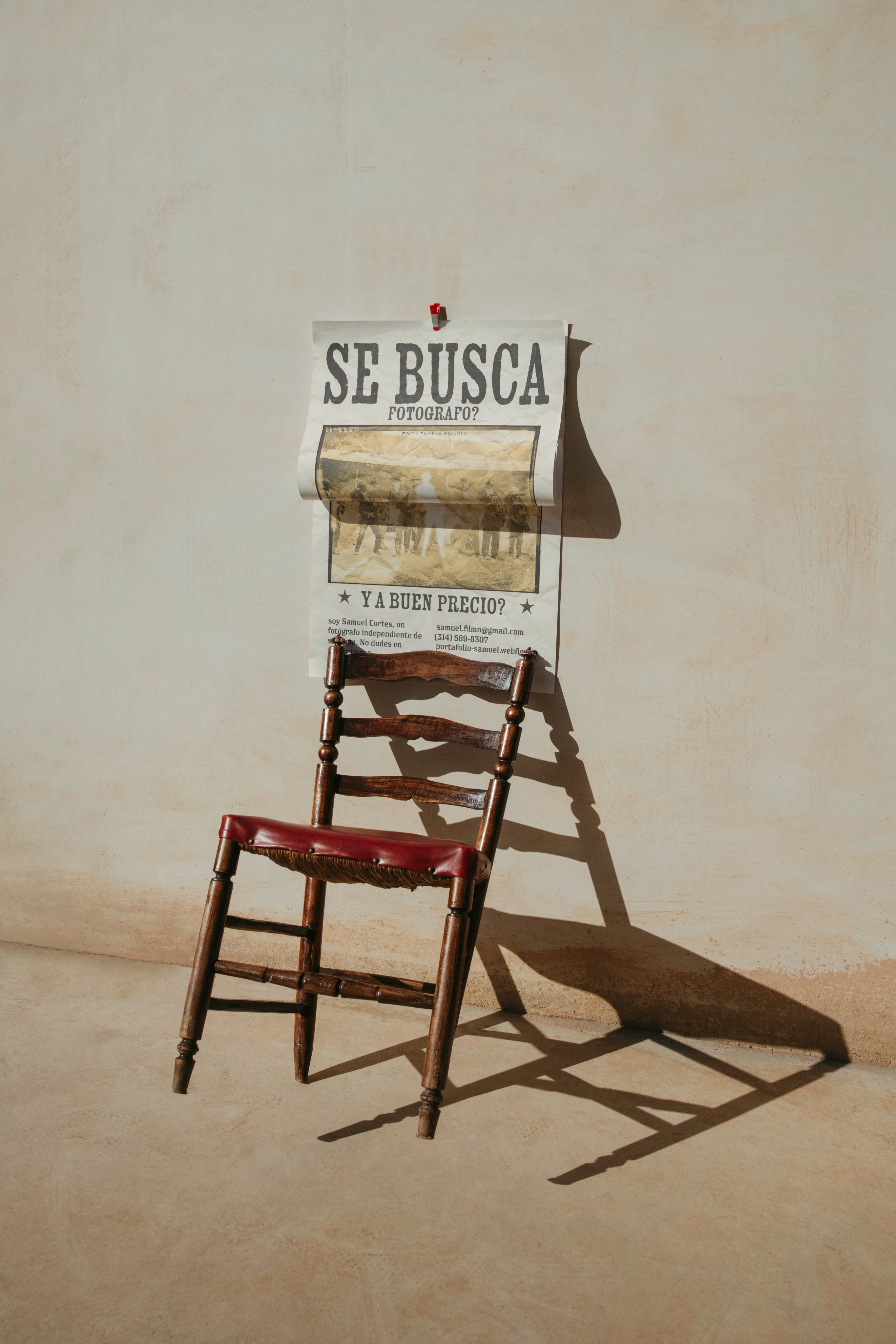 Promotional flyer for an independent photographer, inspired by the 'Wanted' posters of the Wild West. Featuring a vintage and organic style, it cleverly uses humor and creativity to grab attention, transforming the classic wanted poster format into an engaging invitation to hire high-quality photography services at an affordable price.